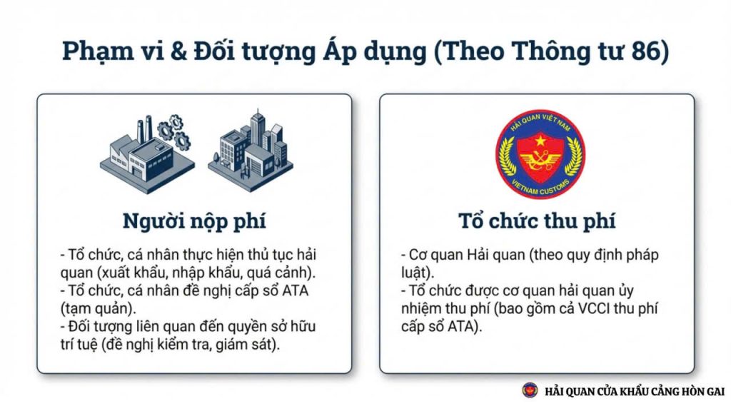 – Tổ chức được cơ quan hải quan ủy nhiệm thu phí hải quan và lệ phí hàng hóa, phương tiện vận tải quá cảnh (bao gồm cả Liên đoàn Thương mại và Công nghiệp Việt Nam thu phí hải quan cấp sổ ATA).