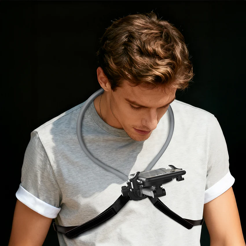 Dây đeo cổ, nhờ cấu trúc kẹp có thể tháo rời, có thể biến thành giá đỡ để bàn, tăng thêm sự thoải mái khi xem. Rất tiện lợi khi sử dụng ở nhà, quán cà phê, trên máy bay hoặc trên tàu hỏa. Chất liệu silicon mềm dẻo thân thiện với da và tạo cảm giác thoải mái ngay cả khi sử dụng trong thời gian dài. Thiết kế có thể gập lại, trọng lượng nhẹ giúp dễ dàng mang theo trong bất kỳ túi xách nào.