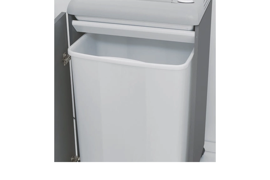 Thể tích thùng chứa: ~100 lít — giúp chứa lượng tài liệu đã hủy mà không phải đổ thường xuyên.